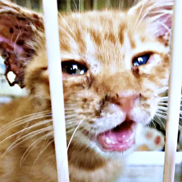 翌日、動物病院に連れて行ったツナくんは、重度の猫風邪と診断されました。目や耳、鼻も炎症を起こし、鼻水で詰まって鳴くことさえ困難な状態だったといいます。