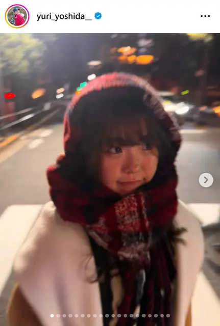 吉田優利、充実のオフショット公開!赤ニット姿でスタイル抜群
