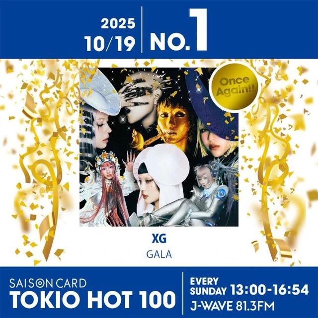 J-WAVEのラジオ番組『SAISONCARDTOKIOHOT100』で、XGの『GALA』が3週連続で1位を獲得!華やかなダンスパフォーマンスにも注目が集まっています。番組は、J-WAVE全番組のオンエア回数に加え、BillboardJAPAN協力の各音楽ストリーミングサービス、ダウンロード、動画再生回数、CDセールス、SNSデータなどを総合的にポイント化して算出される、信頼性の高い音楽チャートです。