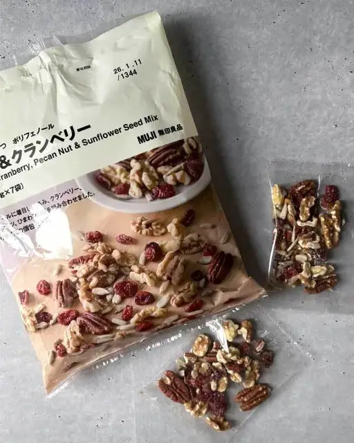 無印良品の「素材の栄養おやつシリーズ」は、体に嬉しい素材を活かしたおやつです。その中でも新作の「ポリフェノールくるみ&クランベリー」は、忙しい毎日を送る10代~30代のあなたにぴったりのアイテム。