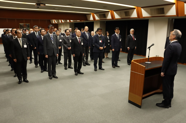 岡田康弘市議会議長もあいさつに立ち、「職員一丸となって津山市に誇りと愛着を持ち、市民のためにという強い信念のもと、ゆるぎなく仕事を進めてほしい」とエールを送りました。市民への貢献を意識し、地域を盛り上げていく決意が職員たちの胸に響きました。