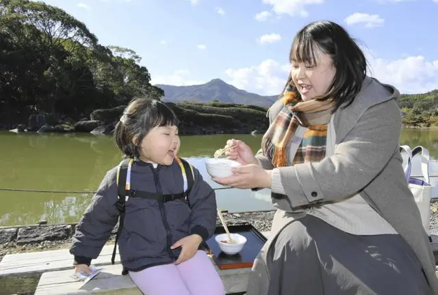愛媛県宇和島市にある美しい日本庭園「南楽園」で、7日に約150食の七草がゆが振る舞われ、多くの来場者が新春の味を楽しみながら無病息災を願いました。