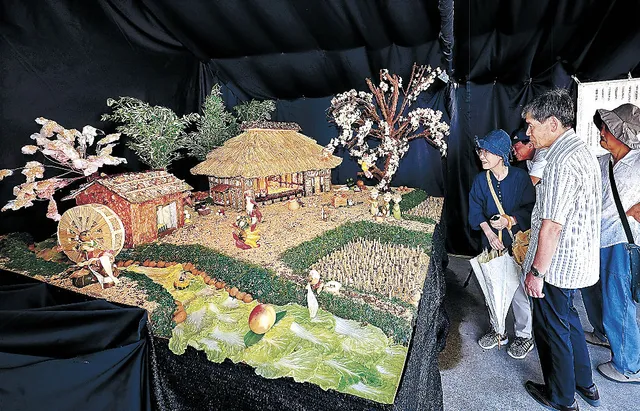 今年のテーマは新高岡市誕生20周年。中島町青年会は、福岡名物の桜をモチーフに加え、花咲かじいさんやかぐや姫、桃太郎など、誰もが知るおとぎ話のキャラクターたちを、ジャガイモやカボチャ、サツマイモといった様々な野菜で表現しました。32作品という過去最多の作品が並び、来場者を魅了しました。