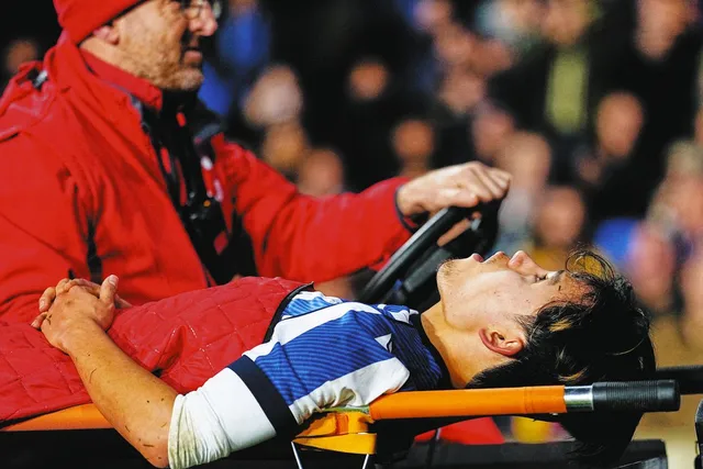 後半21分、カウンターを狙ってスプリントした際に、突然ピッチに倒れ込みました。左太もも裏側を痛めており、自力で立ち上がることができませんでした。その後、後半24分に担架で運ばれ、チームメイトや対戦相手からの激励を受けながらピッチを後にしました。