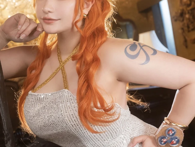 今回の『ONEPIECEFILMGOLD』版ナミのコスプレでは、特に衣装制作に強いこだわりを見せました。ナミが大きく活躍する作品をイメージし、「キラキラなスタジオで、キラキラな衣装を身にまとって」撮影したいと考えたそうです。布選びから自身で行い、納得のいく仕上がりを実現しました。